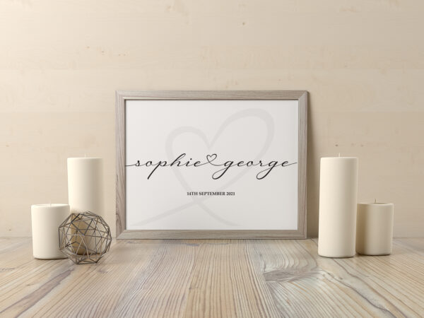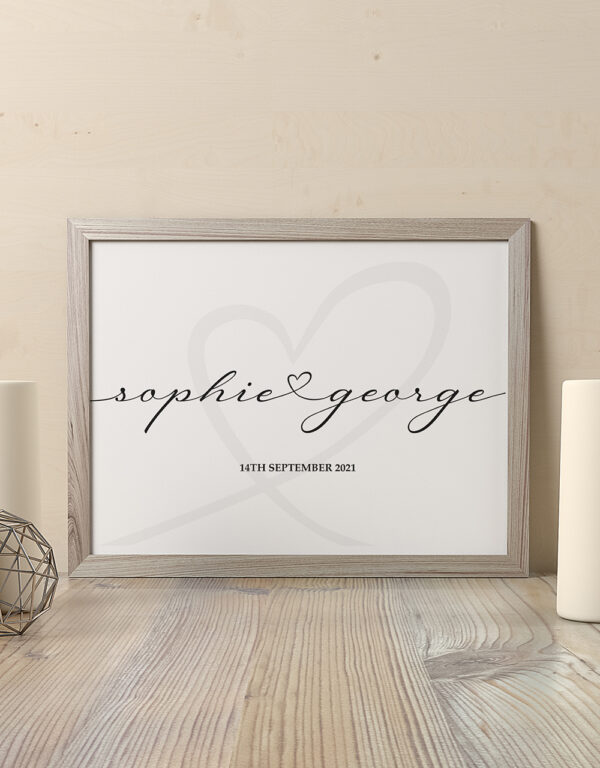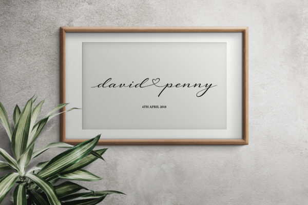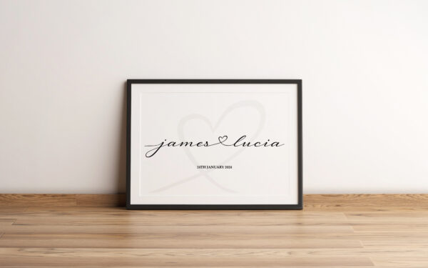 Welcome to your personalised couple name and date print, where your relationship comes to life as a perfect decoration! This custom-made artwork connecting you both with a heart is a beautiful addition to any home, celebrating the unique bond and love you have as a couple.
